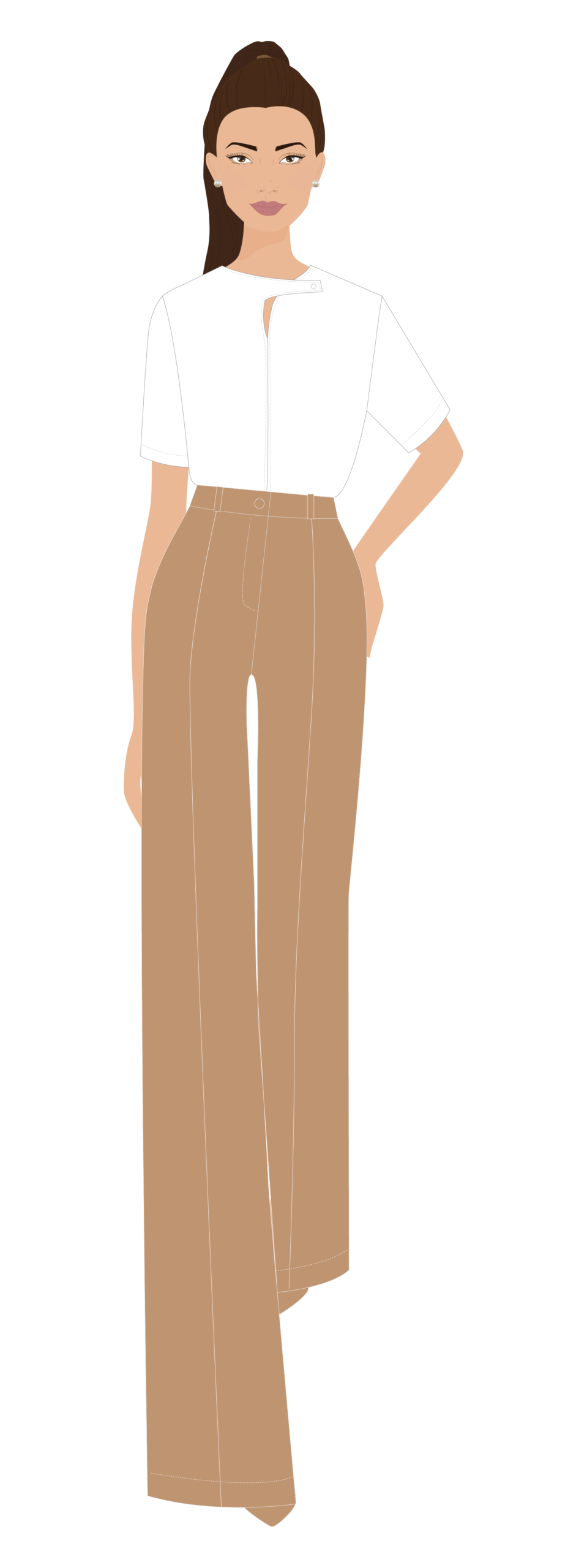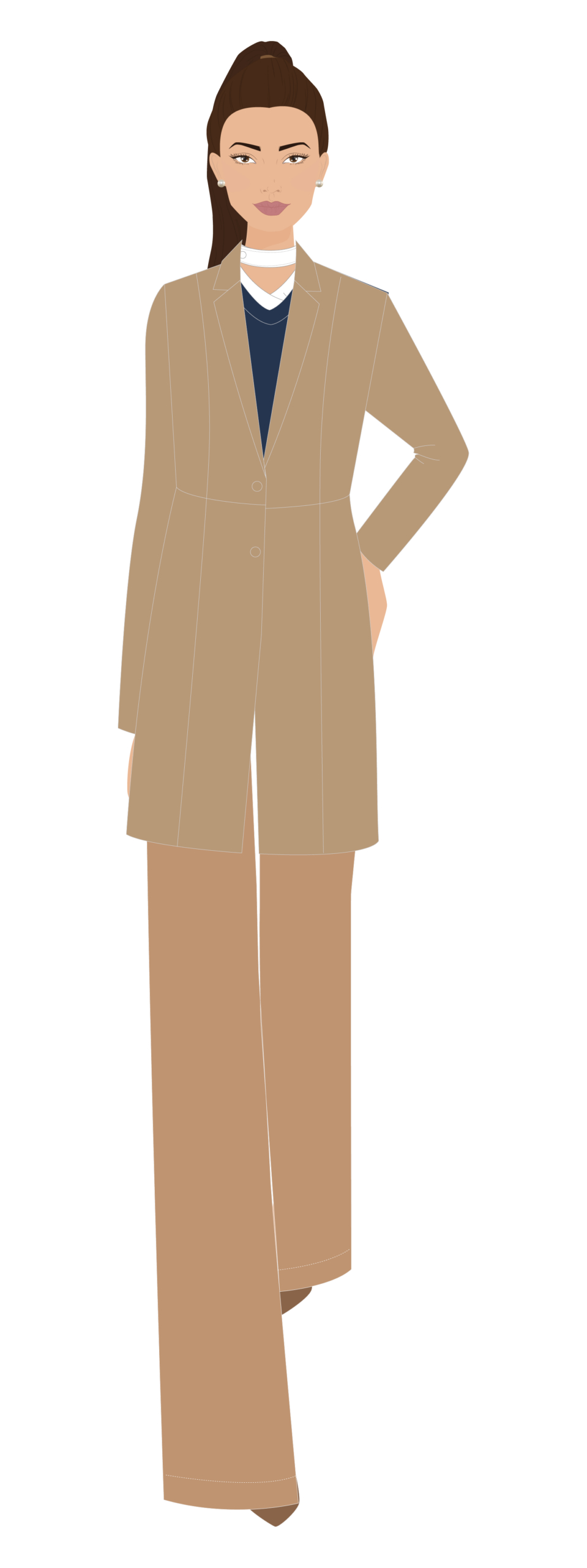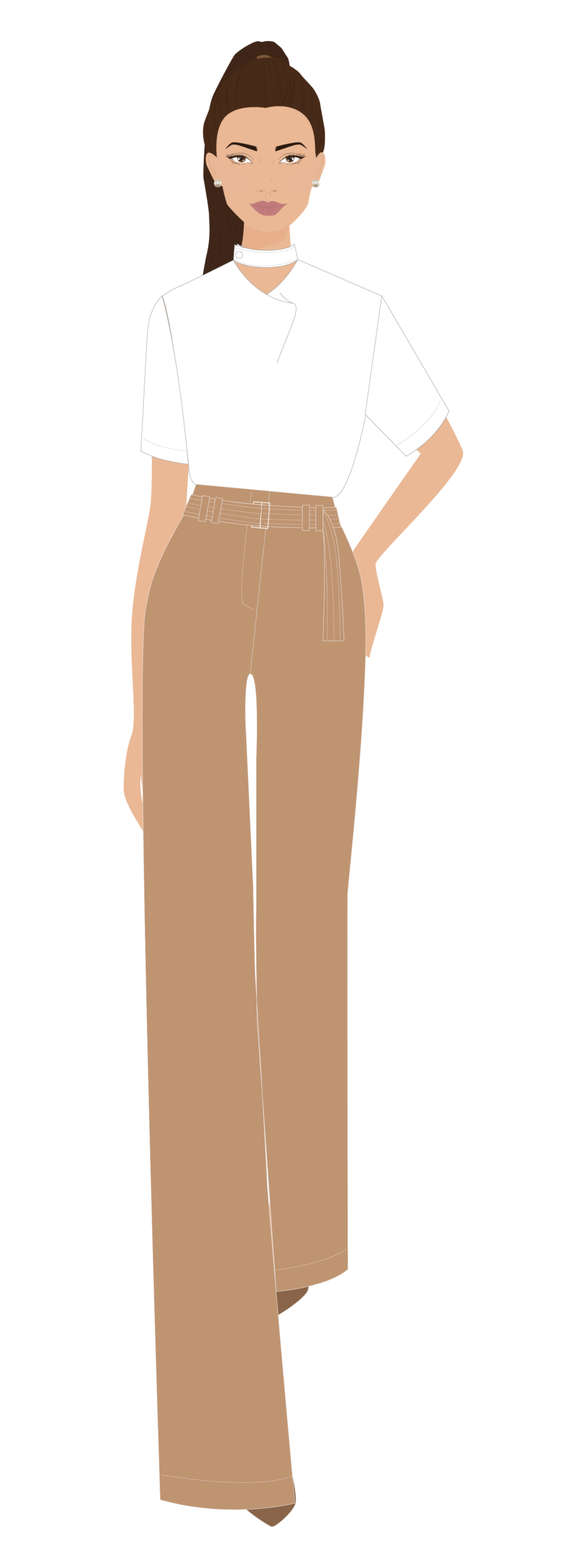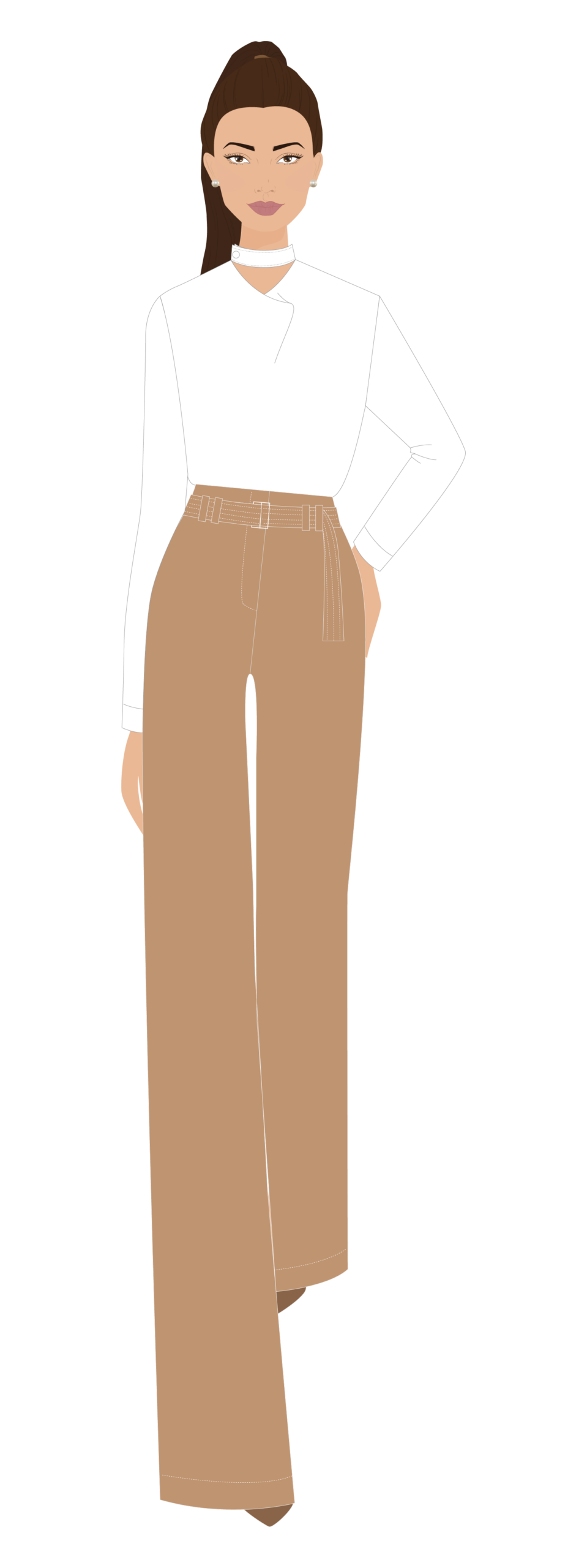 Os cortes foram pensados para unir elegância e modernidade. Blusas com linhas assimétricas e blazers sem gola, marcados por um cinto na altura da cintura, trouxeram uma linguagem de design que dialoga com o universo da moda e da alfaiataria contemporânea.