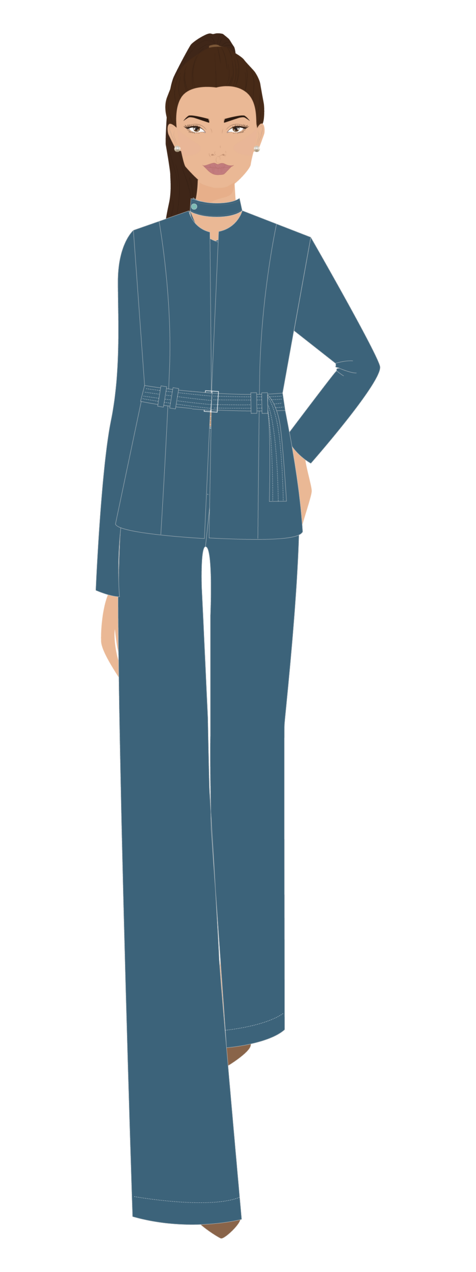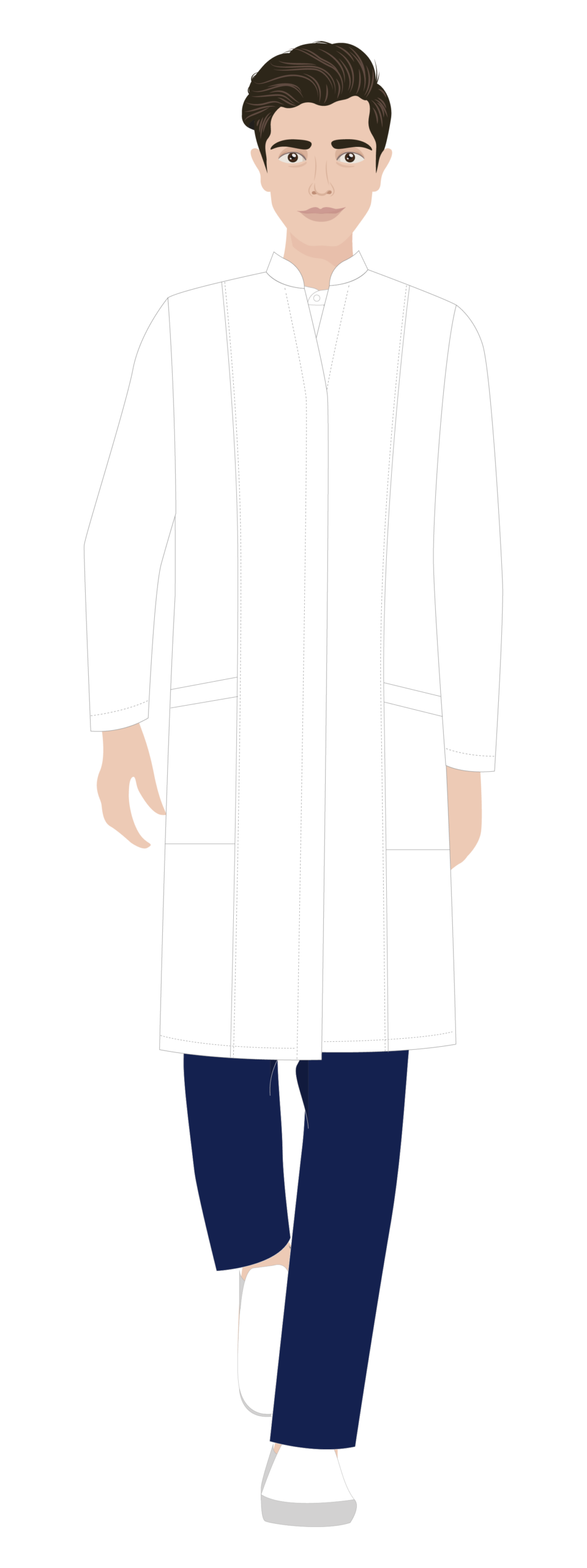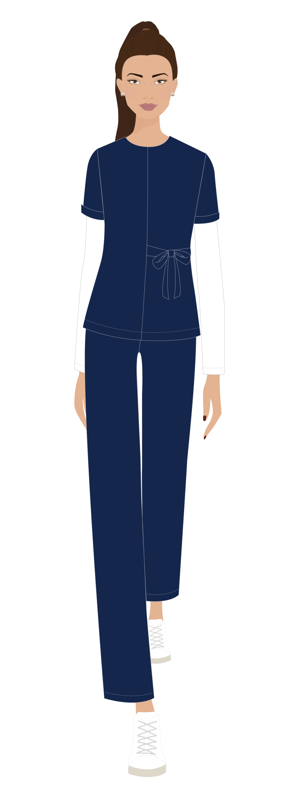 A base da coleção foi construída em azul petróleo, uma cor associada à elegância e à confiança, características fundamentais para o universo da saúde. Para reforçar a conexão com a identidade da marca, detalhes em azul claro foram incorporados aos botões e acabamentos das peças.