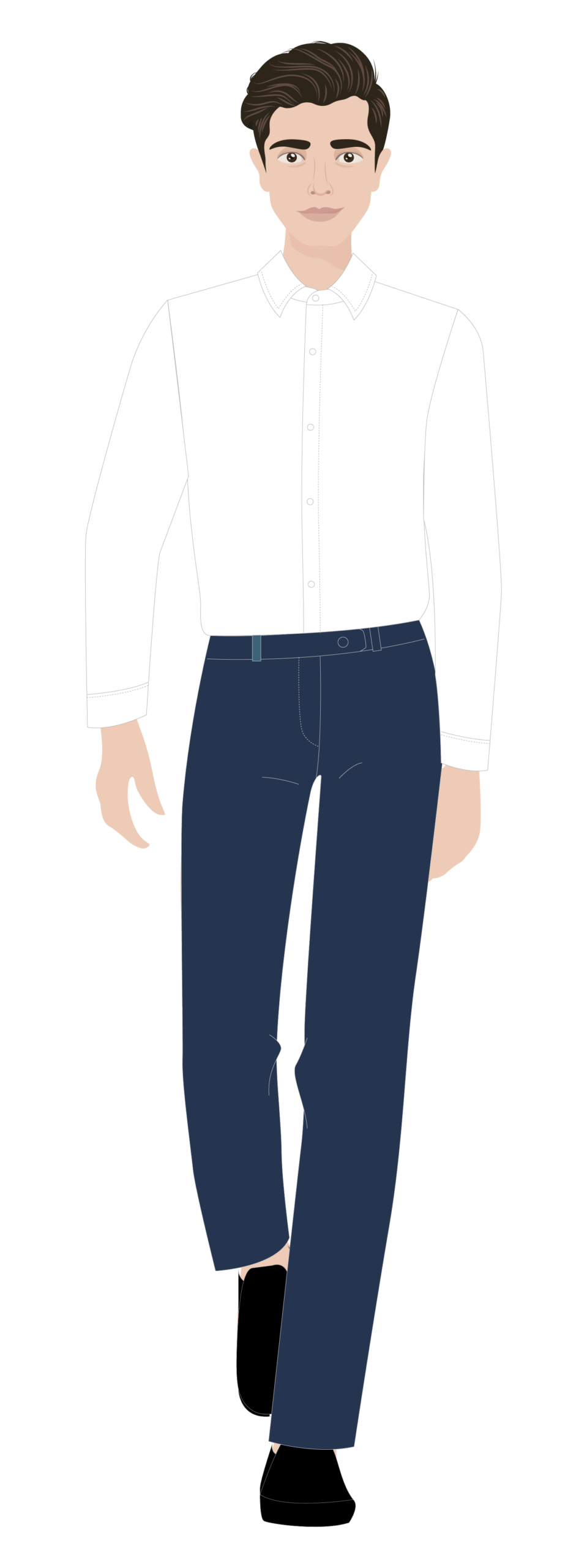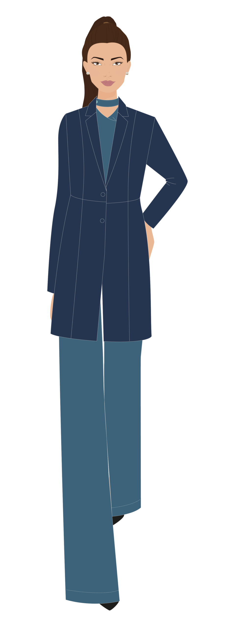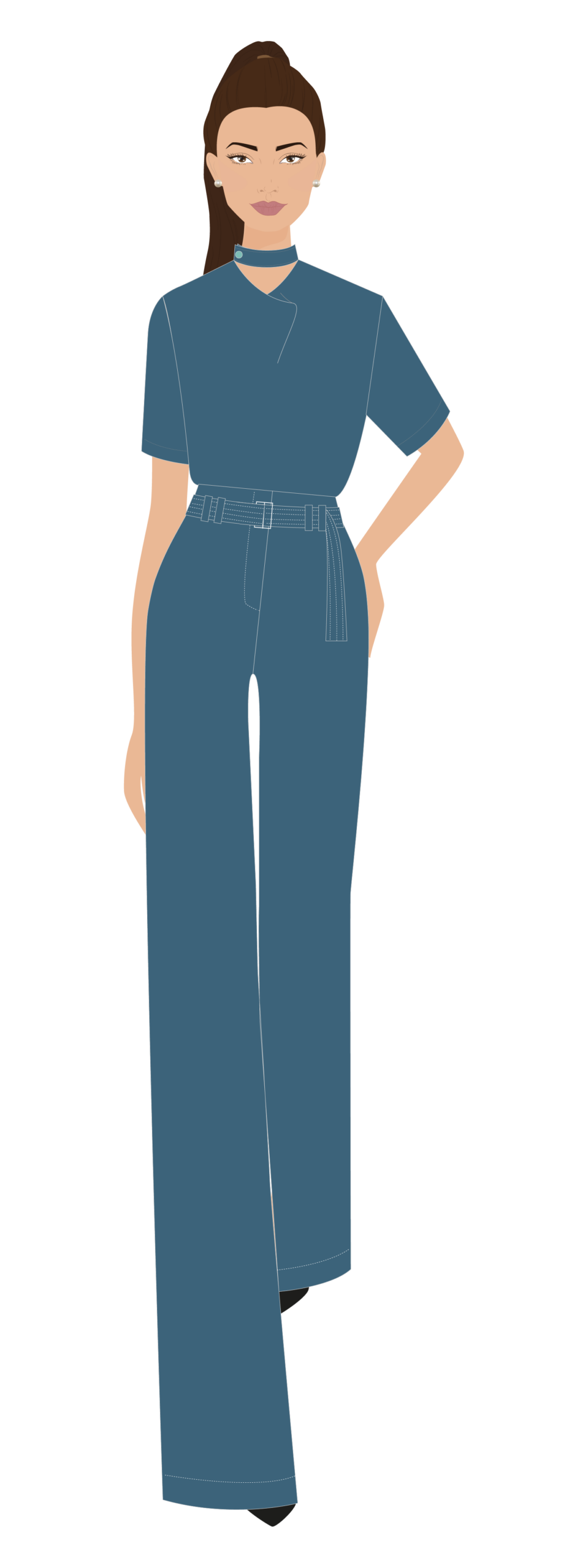 A base da coleção foi construída em azul petróleo, uma cor associada à elegância e à confiança, características fundamentais para o universo da saúde. Para reforçar a conexão com a identidade da marca, detalhes em azul claro foram incorporados aos botões e acabamentos das peças.